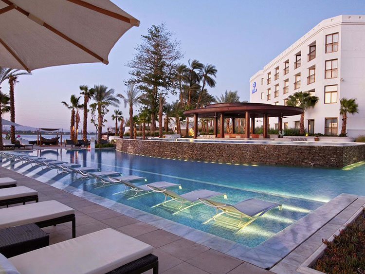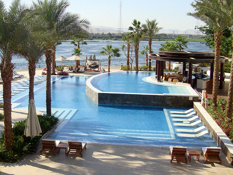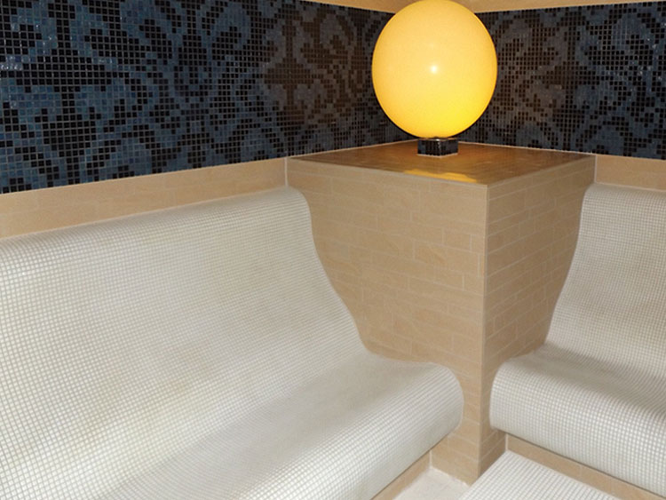 In Hilton Luxor, BISAZZA Glass Mosaic was used in the Main & SPA Swimming Pools. Also it was used for decorating all SPA areas (steam rooms, showers, massage rooms...ect).