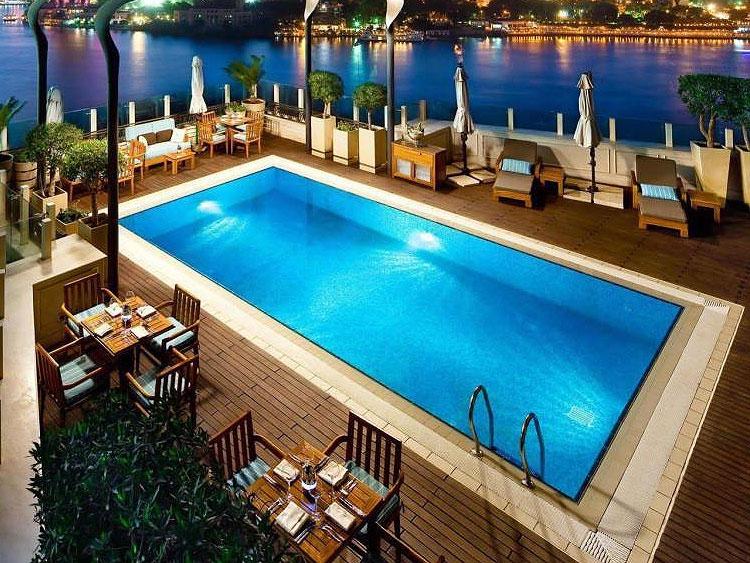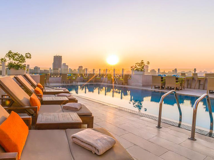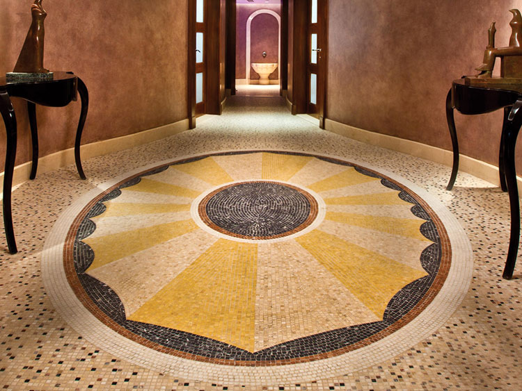 In Kempinski Nile Hotel, BISAZZA Glass Mosaic was used in Swimming Pool. Beside, ZAIJIAN Marble Mosaic was used for floor of Spa entrance.
