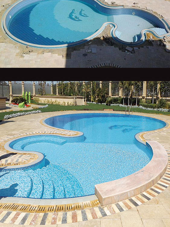 BISAZZA Glass Mosaic & VITRA Ceramic Tiles and Special Pieces were used together to achieve a special customized design.